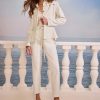 Description: Redefine contemporary power dressing with this beige tailored jacket and pant set. This ensemble is defined by its sophisticated neutral hue and architectural precision. The structured jacket features a distinctive designer back detail that adds an unexpected high-fashion element to the classic silhouette. Paired with coordinating high-waisted tailored pants, the set creates a statuesque and authoritative profile. Crafted from a premium suiting-grade fabric with a soft-matte finish, it ensures all-day comfort while maintaining a sharp, polished aesthetic. Perfect for professional environments, creative leadership roles, or upscale social events.