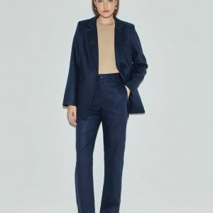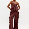 Features: Tailored straight-leg pants; Sleeveless shell; Fluid drape
