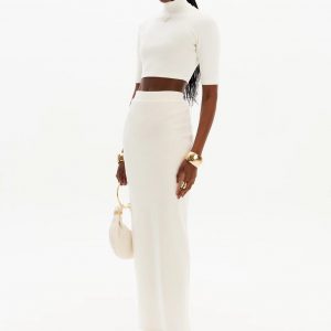 Features: Intricate lace appliqués; Tailored trousers; Sleeveless top