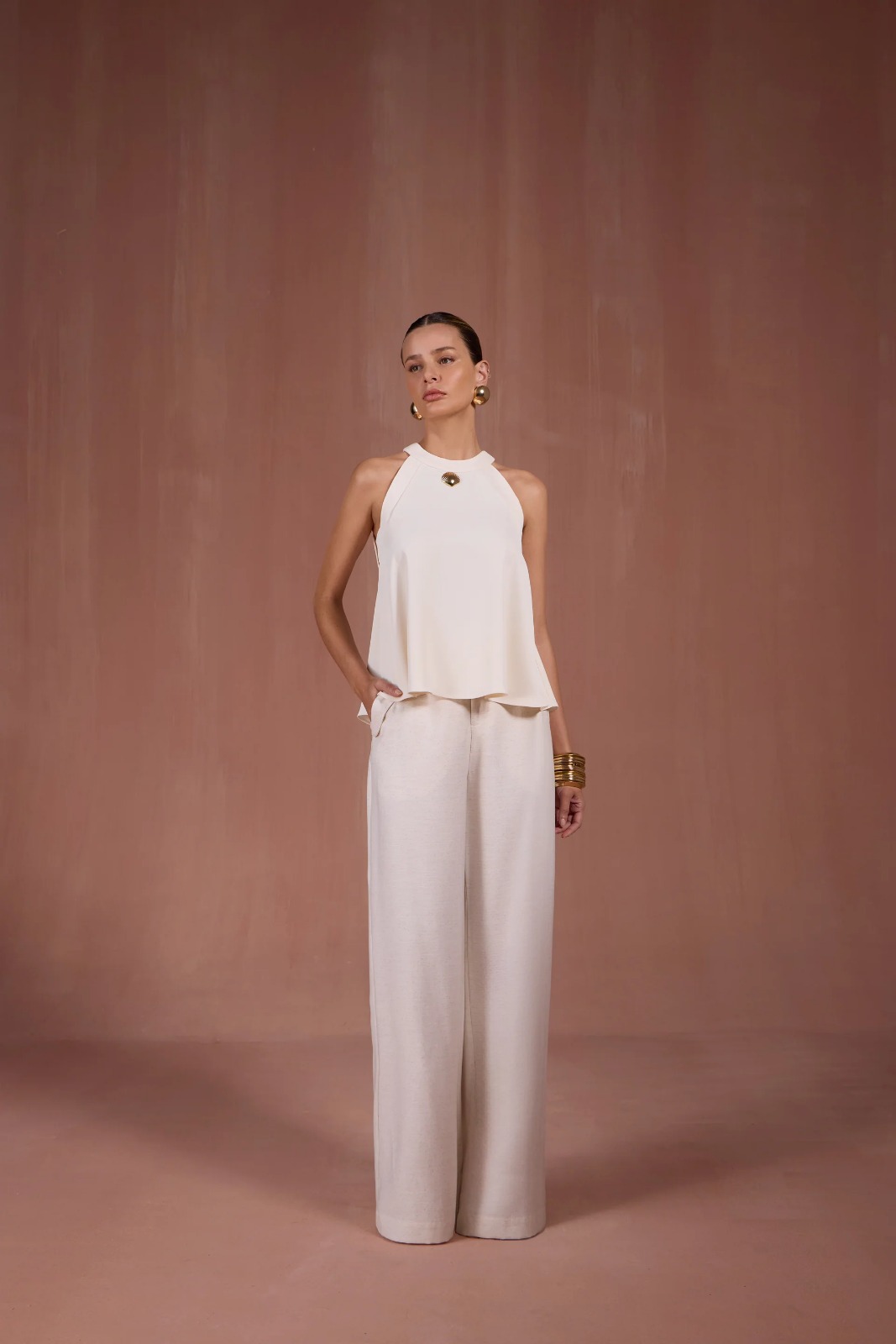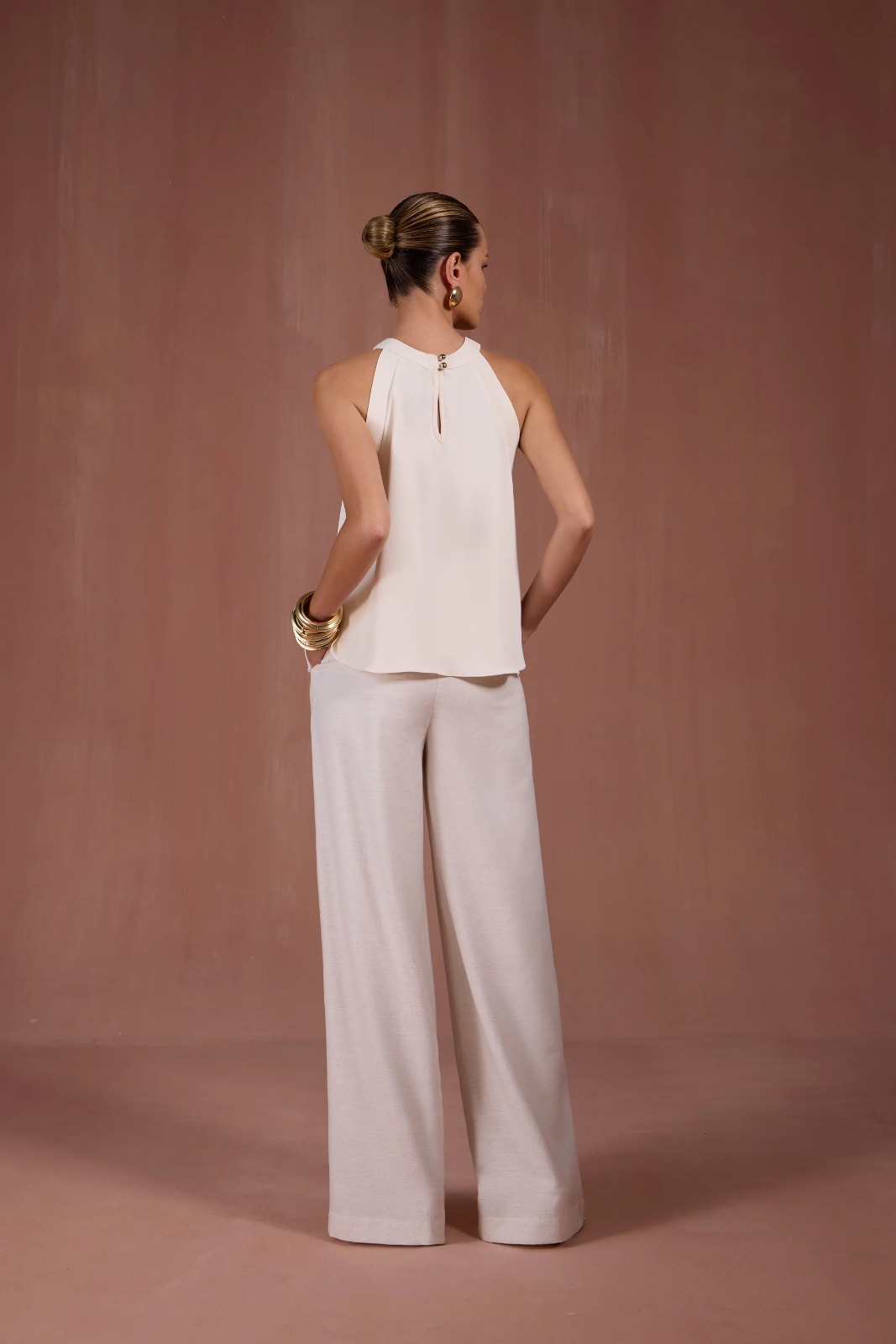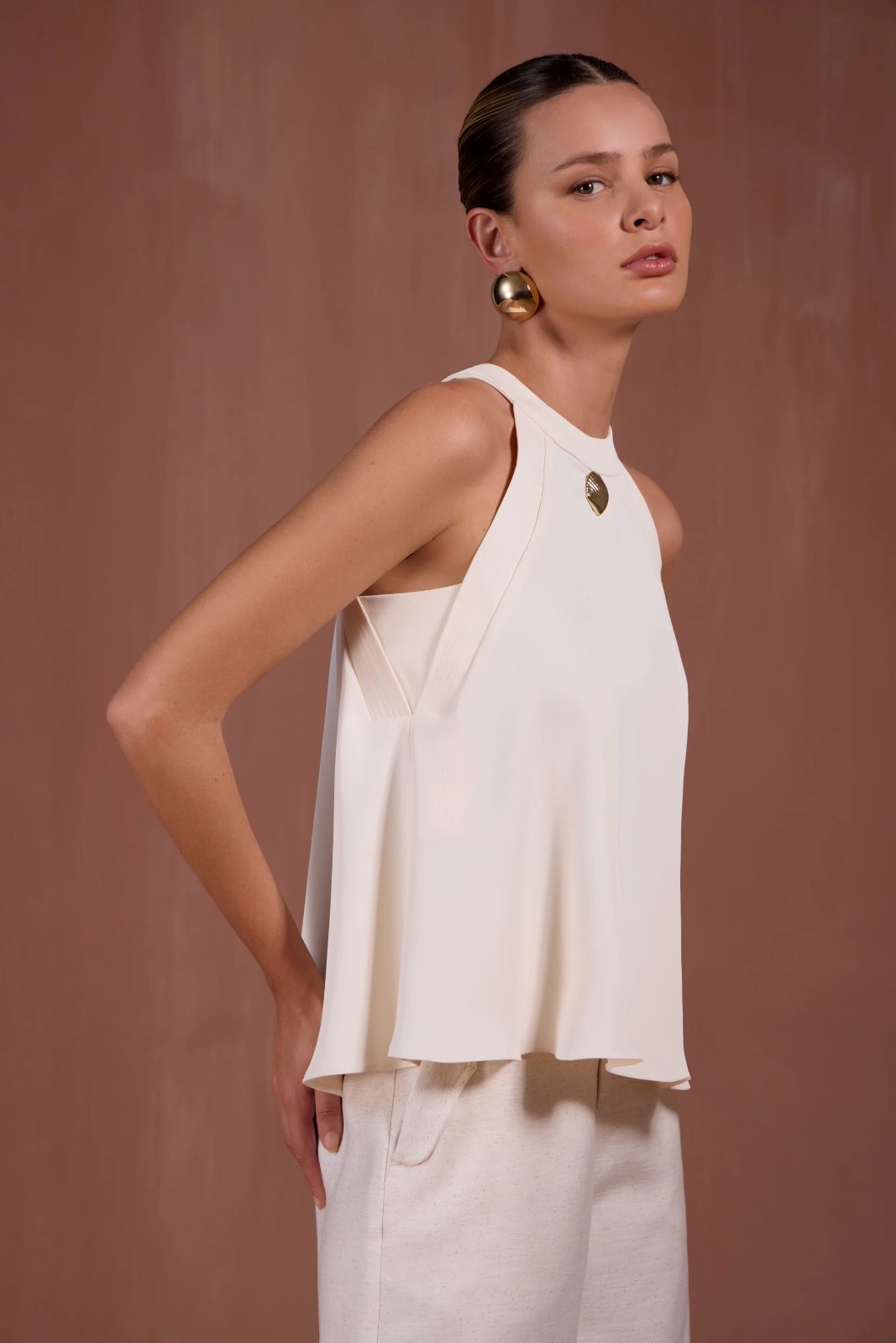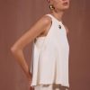Description: Achieve a look of pristine minimalism with this off-white sleeveless blouse. Defined by its minimalist solid finish and high-quality construction, this piece offers a modern take on professional and social tailoring. The soft ivory hue provides a luxurious aesthetic, making it an ideal choice for creative leadership roles, sophisticated social luncheons, or as a refined layering piece under a tailored blazer. Crafted from a premium breathable fabric with a soft-touch finish, it ensures a polished profile while maintaining exceptional comfort throughout the day. Its understated design serves as a timeless canvas for both bold and delicate accessorizing.